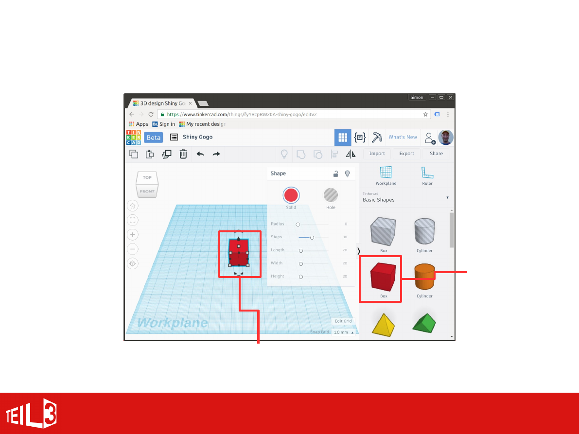 Wenn eine Grundform durch anklicken aktiviert ist, können die